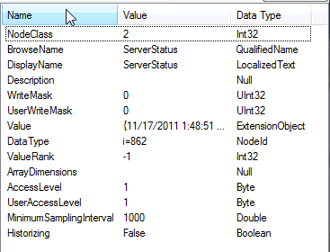A simple display of the attributes for the currently selected Node (in the address space navigation):